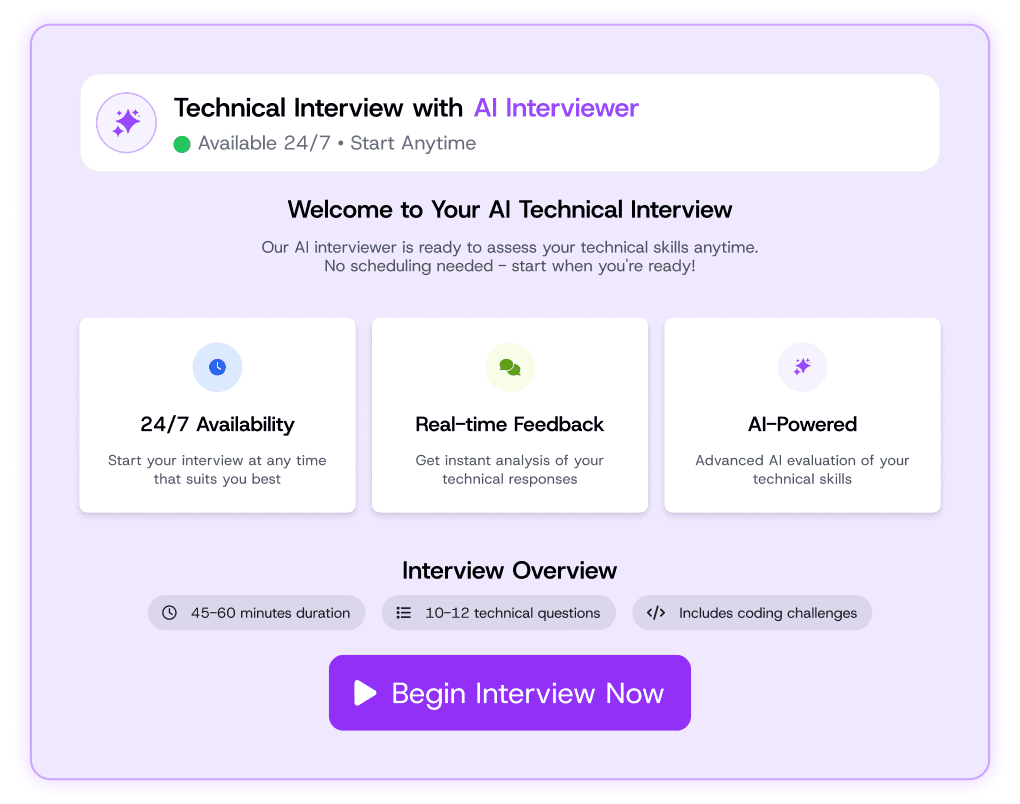 Candidates can schedule and complete screenings at their convenience, eliminating timezone barriers. This flexibility reduces drop-off rates and accelerates the hiring process globally.